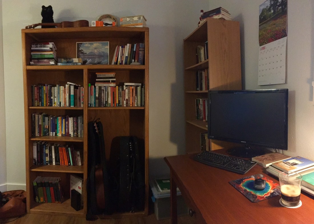 16 April 2018: Almost a year ago, when Jess and I moved apartments, I found a couple bookcases someone was giving away online. I spent a whole afternoon filling them. I placed Leopold next to Muir, Jung next to Aesop, Hemingway next to Dickens. I enjoyed the order, the organizing. One shelf for Kerouac, one … Continue reading My Library